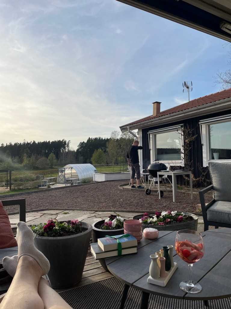 Väl hemma så fick jag lite mer champagne och så kunde jag gå runt i lugn och ro och peta ner växterna vi köpt. Barnen lekte ihop, jag kunde bara pilla med mitt, och maken ordnade maten. Såååå ljuvligt!