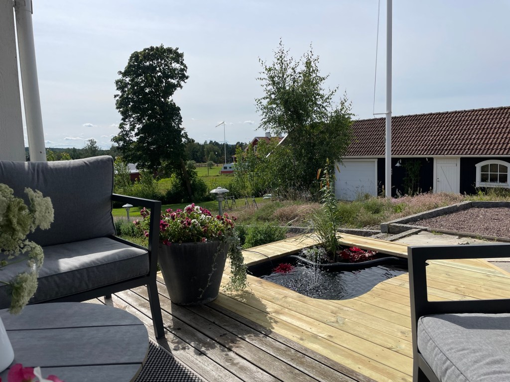 Så trevligt med lite vatten och vattenljud, och sånt med lite extra plats för möblerna på altanen. Nöjd!