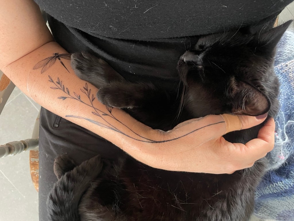 Sen lider jag inte hemma, absolut inte, hade det inte varit för att ledigheten och så så hade det varit toppen. Här kan jag slänga igång en brasa om det blir lite kyligt, och så har jag alltid katterna till sällskap. Speciellt vår svarta katt Sotis är gärna inne när det är skitväder, jag ÄR ju allergisk men kan liksom inte låta bli, får tvätta händerna och ta en allergitablett om jag gosar mycket.