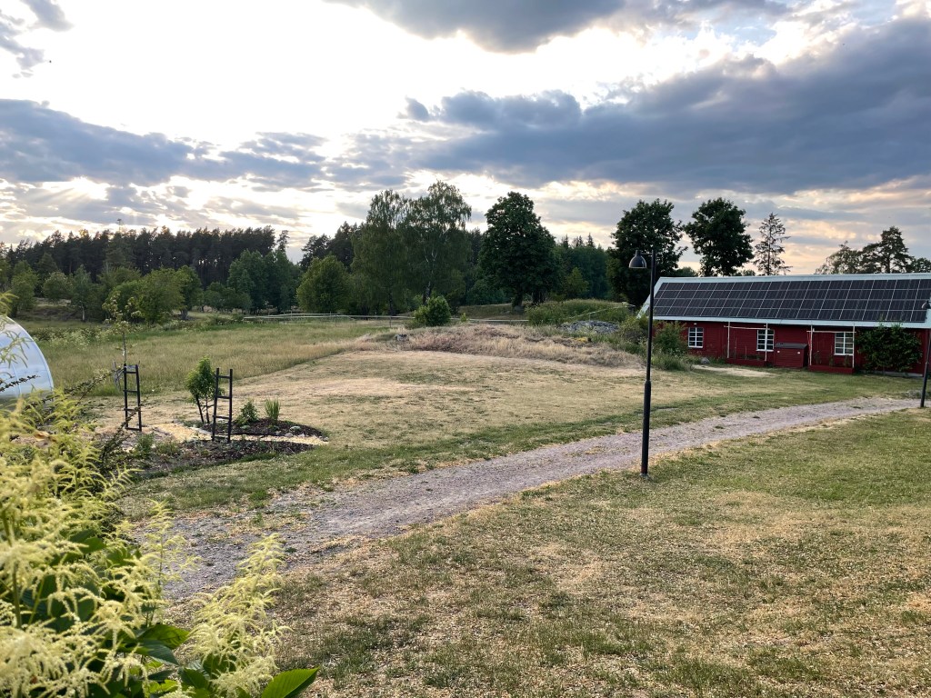 Hade ju glömt! Men det var ju tillräckligt med kyla och snö för att åka skidor på Dumme Mosse ju!Vi bytte den gamla tvättstugedörren till en helt i glas – både ljusare men även till himla stor nytta när man behöver lokalisera familjen ute på gården. Vi firade min bror som fyllde 40 med lite familjeutflykt på Visingsö.Vi fräste upp en liten åker och satte rovor – i efterhand en dum idé, vi orkade inte rensa ytan och grisarna äter inte råa rovor utan vi behöver i så fall koka dem = för bökigt i vardagen. O grävde en ankdamm……och all jord blev till ett stor, ny blomsterrabatt! Maken byggde en altan utanför växthuset – nästa år blir det med pergola till också är tanken. Precis i början av sommaren var det så torrt och bränt överallt att jag ALDRIG trodde att det skulle bli grönt igen….…men precis efter midsommar vände det ju. Själva midsommar blev dock fin!Som tur var hann vi installera den nya altandörren i vardagsrummet innan regnen kom. Storbarnen var på egna sommarläger och vi tog med lilleman på en miniweekend i LinköpingVi fick två små kattungar! Juni och Vante, två små töser ❤I växthuset växte gurka och tomater – och överallt ute exploderade ogräset av allt regn så jag höll på att bli galen…Vi fick nya ankor – men precis som de förra så fattade de aldrig att de skulle gå in när det blev mörkt, så en kulen höstkväll blev de skrämda av nåt just som vi skulle gå ut och ta in dem, och flög all världens väg… Vi ger upp ankor nu. Den regniga sommaren gav dock enormt mycket grönska!Vi lånade sommarfår – väldigt trevligt och till stor hjälp för att sköta betesmarkernaFrank kom till gården, med förhoppning om små griskultingar i början av 2024!Vi traskade lite på Bauerleden, i våra egna hemtrakterVi försökte njuta av sista höstfägringen med de båda lönnarna, nu är den till vänster nere pga stor skada efter ett oväder 😦Och jag stickade min första tröja!