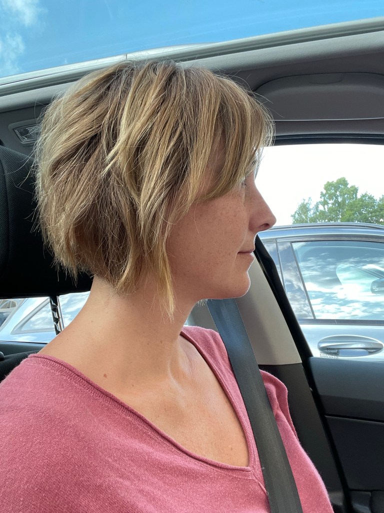 Själv känner jag att mitt Jag är lite borttappat. Både skönt och lite jobbigt, skönt att inte gå runt och fundera på hur man ser ut eller så , men samtidigt lite vilset att inte ha nån tid att ägna åt sig själv (förutom träning, det är ju MIN tid). Åh på tal om träning förresten, det känns riktigt bra nu! Jag är fortfarande i kass form men jag känner att jag gör lite framsteg och det är såååå efterlängtat! Känner också att kroppen svarar litegrann, och jag känner mig inte längre helt och hållet som en säck potatis. När det gäller det yttre så känns det lite trist just nu, men kan i alla fall konstatera att jag aldrig någonsin haft så ljust hår som jag har just nu – det har blivit så himla blekt i sommar!