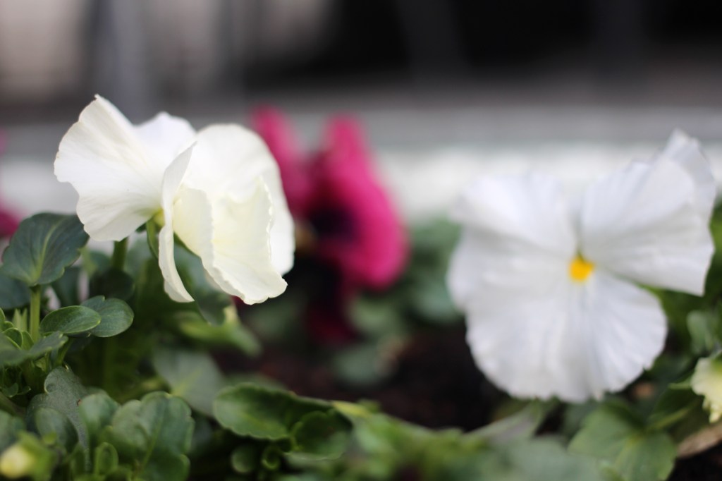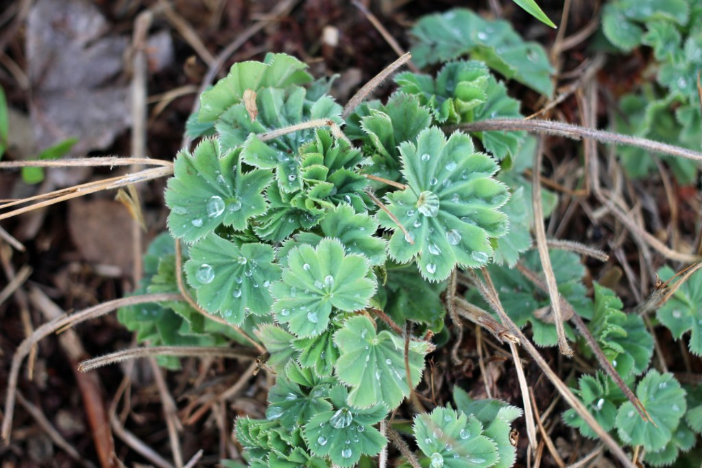 Jättedaggkåpa växer nästan som ogräs här, men ett välkommet sådant. Väldigt fin med sina flikiga blad. Det här tror jag är en gammal pensé, men snart kommer även viol som vi har i mängder. De tittar upp i vartenda stenparti och grusparti, och är likt Scillan välkomna trots sin ibland udda placering. I krukorna vid altanen kämpar små penséer för sin överlevnad. De brukar vara som finast lagom till jag vill ersätta dem med andra blommor, men då kan de få flytta ut på nån liten jordplätt istället.