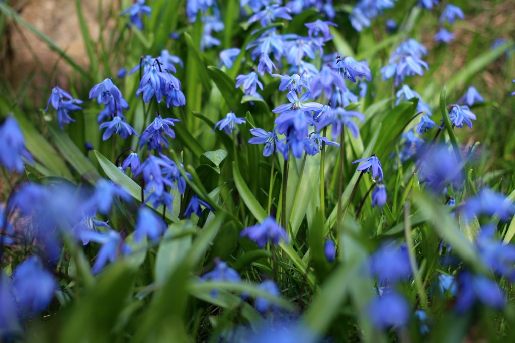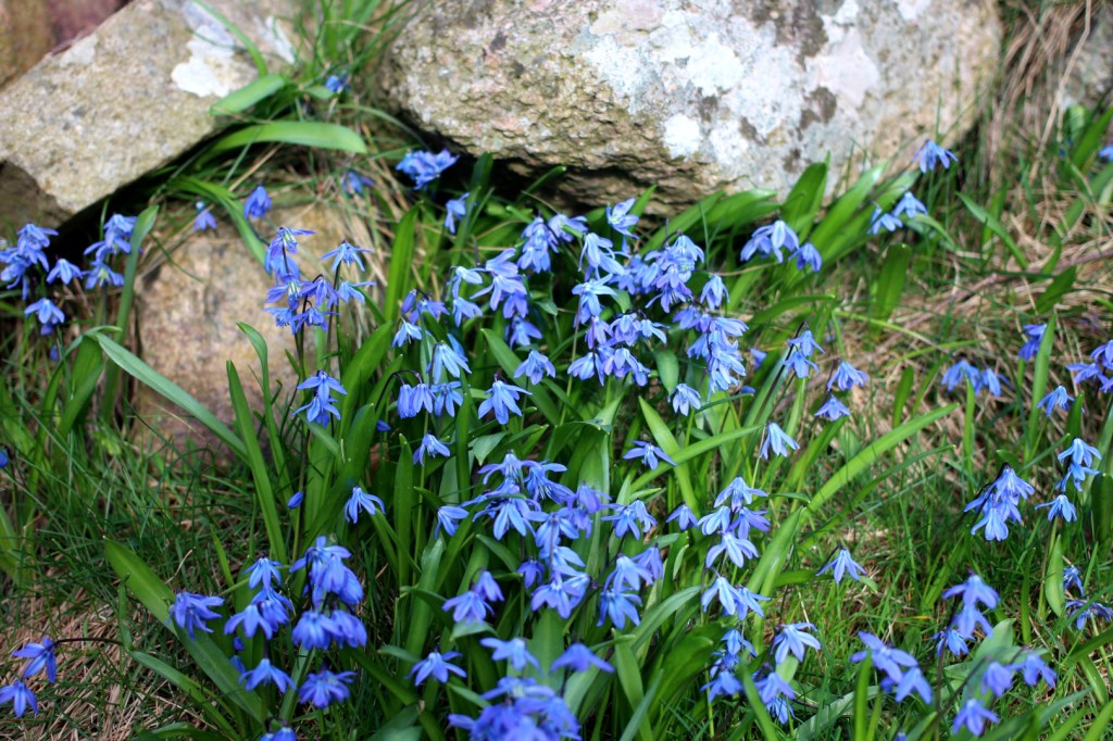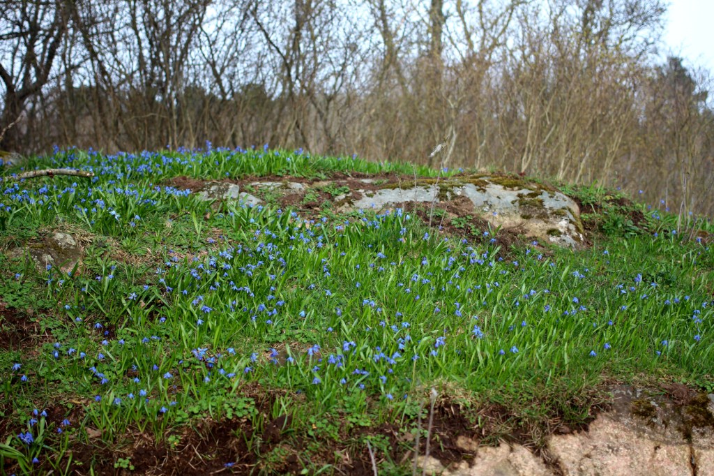 Av någon anledning har vi knappt några vitsippor här på gården, inte ens i skogshagen bakom huset. Snödroppar finns det i hagen däremot, och nu har något som jag skulle vilja påstå är minst lika vackert som vitsippor tagit över – nämligen Scilla! Främst den blå, den finns ÖVERALLT, i gräsmattor, rabatter, stenpartier och i hagar. Det är som luftiga, blå mattor och de är otroligt vackra, kolla bara: