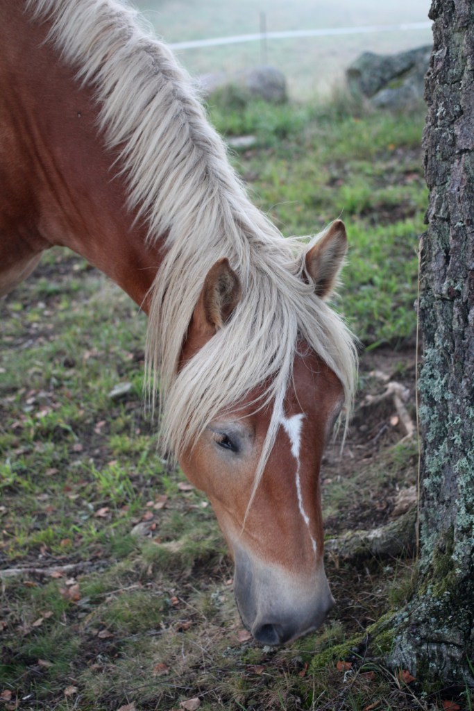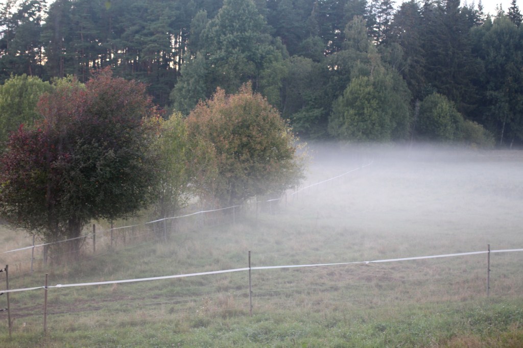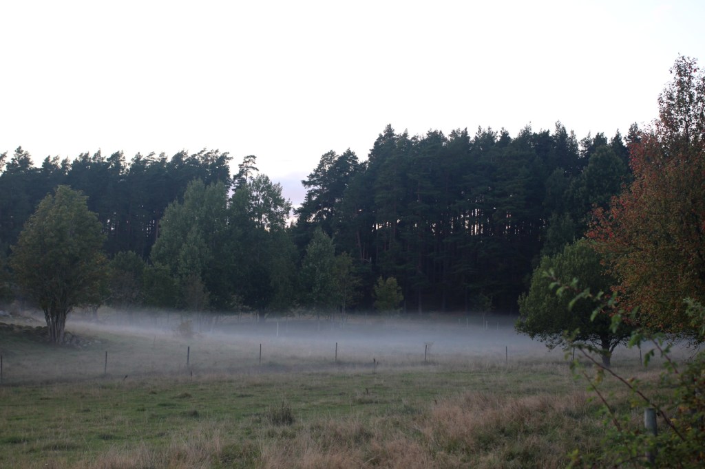 Grannens häst går i hagen och betar, hönorna går runt på hela gården och pickar och nu så har vi även de fyra ljuvligt söta små gyltorna (hon-griskultingar) på plats. Gården känns bara mer och mer levande och det är en obetalbart tillfredsställande känsla. Gick runt i kväll och skulle plocka in lite redskap när det plötsligt drog in sådana stråk av höstdimma att jag var tvungen att springa in och hämta kameran, önskar att jag verkligen kunde fånga det, men jag gör så gott jag kan med de minuter jag får över och den utrustning jag har…