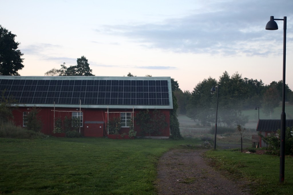 Det blir inte lika ofta jag skriver här just nu – det är helt enkelt för mycket jag vill (och en del jag behöver behöver) göra, så hela eftermiddagarna och kvällarna går åt till ”gårdsarbete” Var ute på inspektionsrunda nyss, och gurkorna verkar inte ha överlevt den kalla natten dessvärre, även några bönor kämpar lite väl hårt. Tror det var t.o.m. nån minusgrad här när det var som kallast… Nu är ju både gurka och baljväxter ganska snabba att få upp, så det löser sig ändå med lite nya fröer. Förresten så är stalltaket klart med sina solpaneler nu, vi inväntar bara nån strömriktare (kan säga fel) för att koppla på dem så de producerar el åt oss – skönt! Det innebär med att marken söder om stallet nu är fri, så närmst på schemat står att bygga odlingslådor för tomaterna där.
