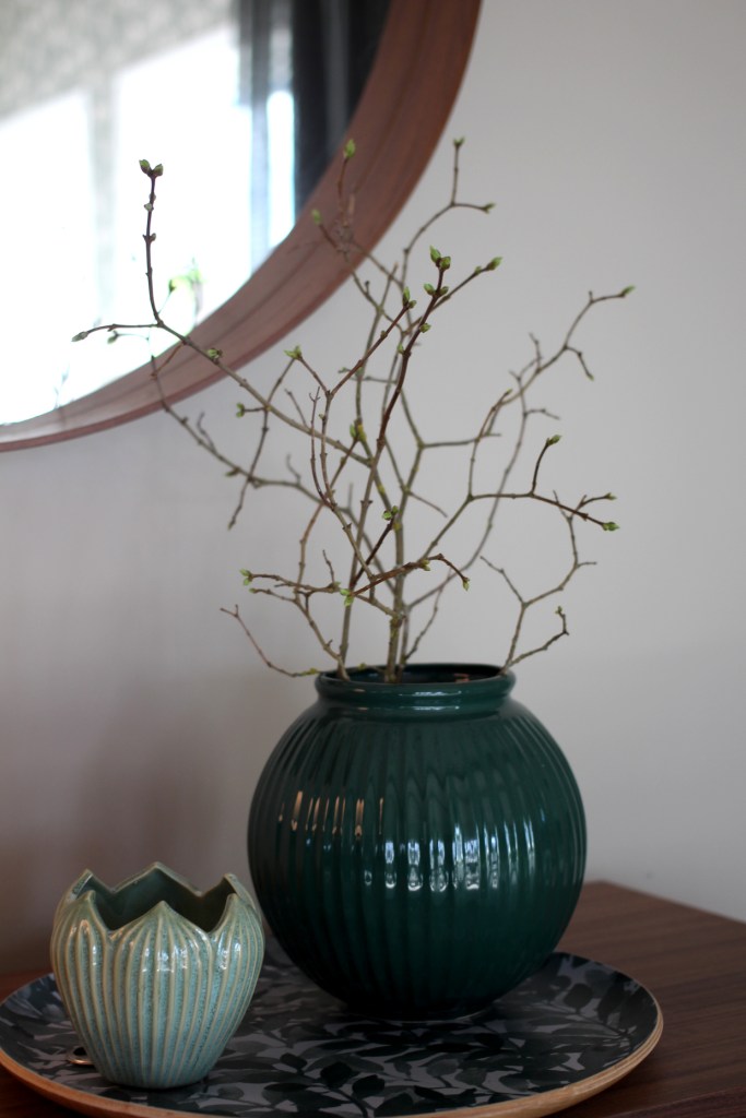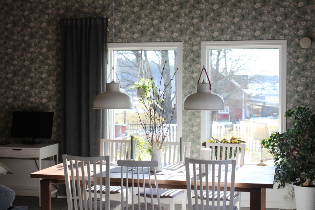 Inne värmer solen gott och jag försöker ta in den grönska jag kan för att liksom försöka hjälpa våren i sitt arbete. Ändå känns det murrigt inne i vardagsrummet, och jag drömmer om att kanske öppna upp och sätta in fönster även mot morgonsolen för att få det ljusare. Kanske en liten trall utanför, där man kan möta morgonsolen med en kopp kaffe i tysthet innan huset vaknar…