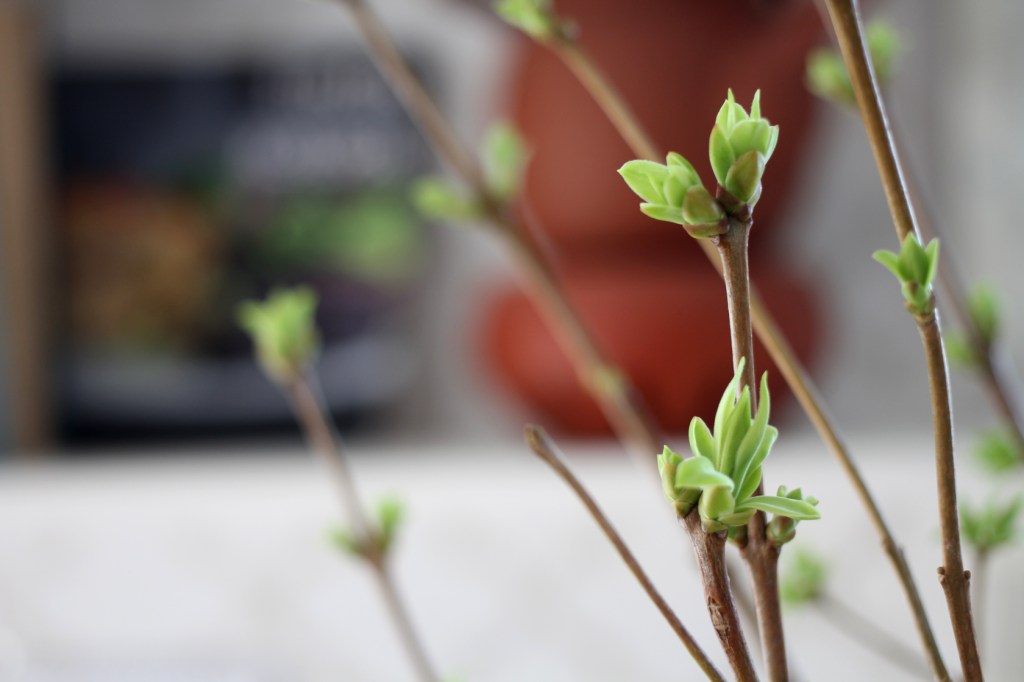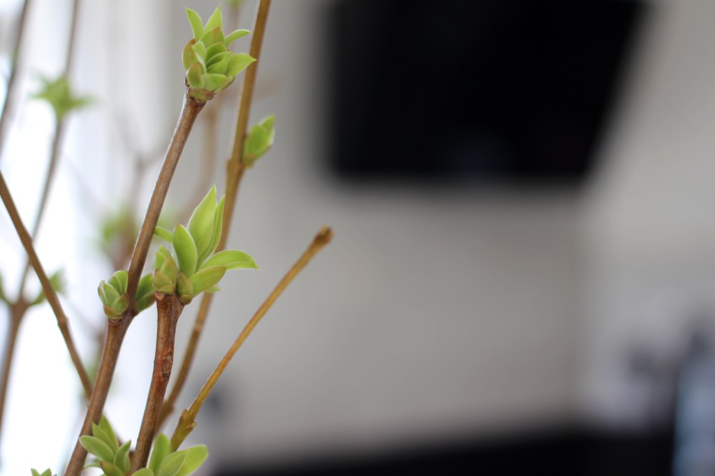Vi röjde sly bredvid elstängslet för ett tag sedan, såg att det var friska knoppar trots att det var kapat och plockade in det – tror det kan vara syrén, väldigt vackert är det i alla fall!