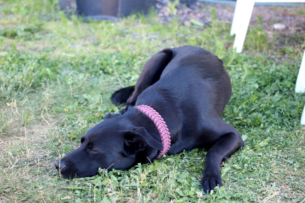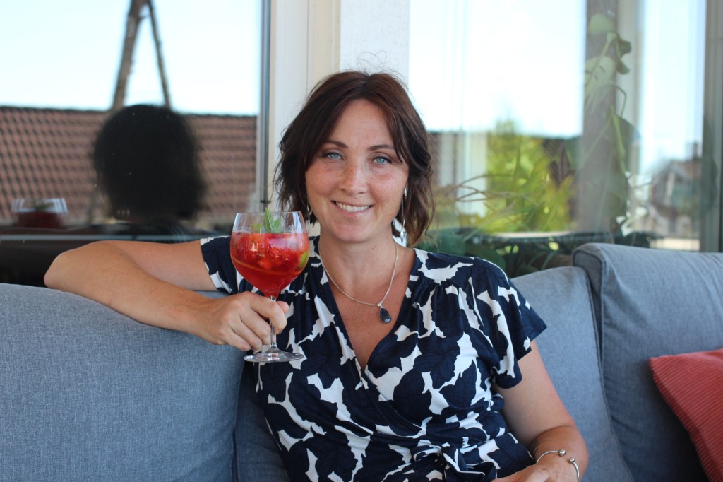 Vi höll oss i skuggan så gott det gick, både fyrbenta och tvåbenta. Efter lunchen serverades såklart jordgubbstårta (dock med köpta jordgubbar – våra är inte klara än)Vi bjöd på en svalkande jordgubbs- och rabarbermojito som gjordes om till longdrink pga varmt…Supergott och så härligt att bara kunna sitta ute och njuta!
