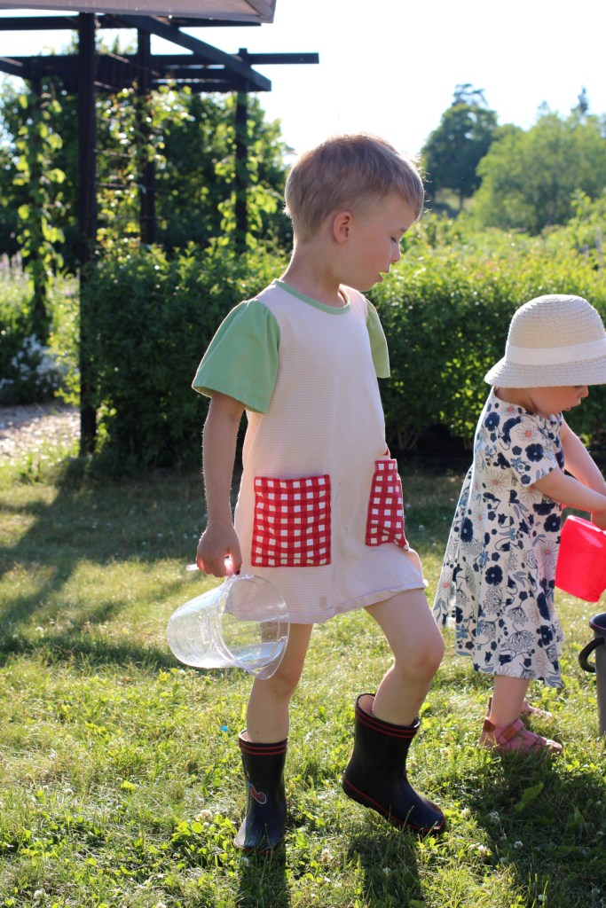 Barnen roade sig med vatten i värmen (andra ombytet för dem båda)…