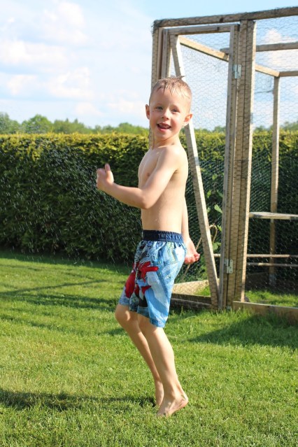 | Tur maken inte är lika känslig för ”kallt” (27 grader) vatten i poolen, barnen älskar när han busar! |