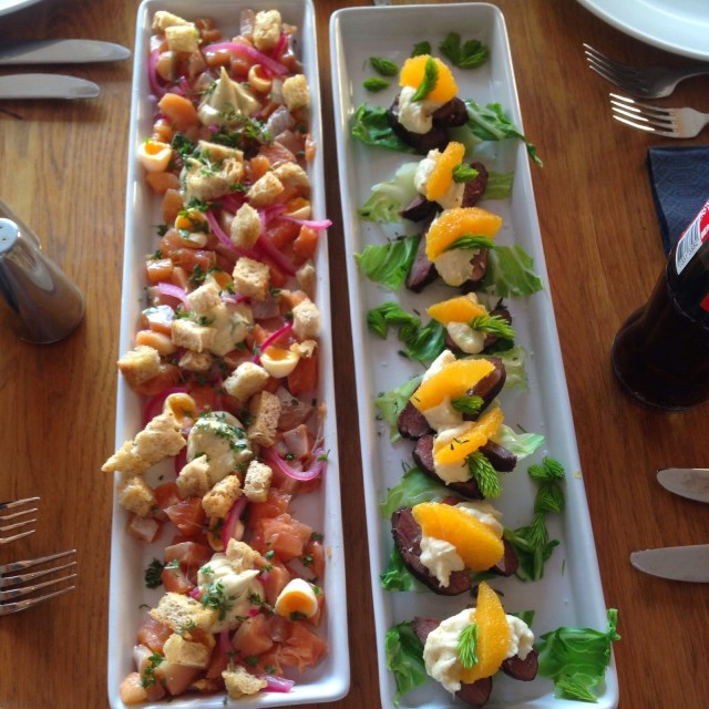 I Beirut serverades som sagt Meze. Till det ett egyptiskt öl (tror jag) och som alkoholfri dryck fanns ett hibiskus-te. |