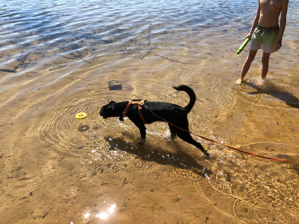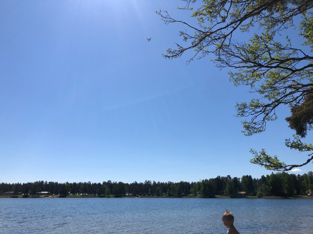 Liten strand med två bryggor, funkade helt ok. Eller ja, det var typ kaos, en hund som sprang överallt (i kort koppel) och skällde på andra som skulle bada (japp, skäms gör man) och en 4-åring som springer helt åt andra håll än man säger och inte lyssnar för fem öre trots att man tar i med sin ”nu-jävlar-röst”. Men de stora kunde bada som de ville och hade det bra åtminstone.