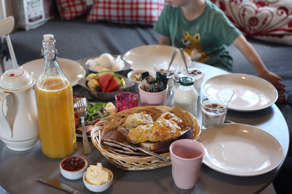 God frukostkorg med hembakat bröd. Lillkillen alltså…Och så han som badade!