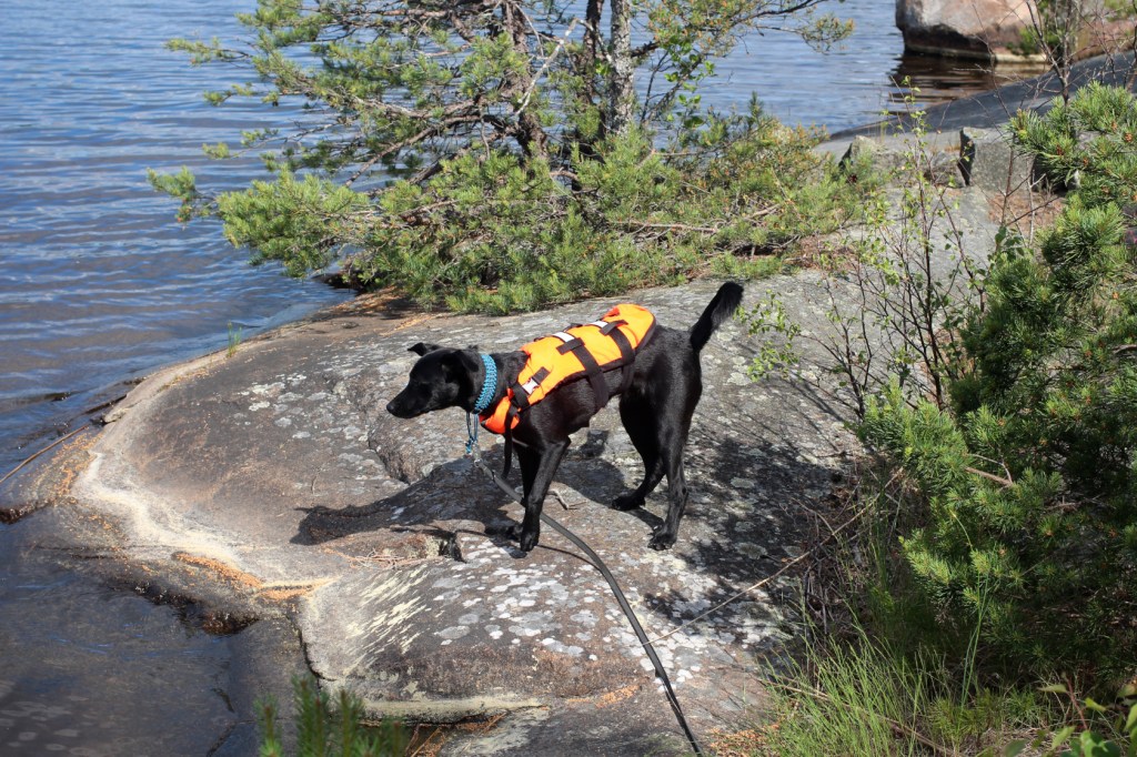 Det funkade bra med Nala i kanoten, även om det var lite nervöst!Den här däremot var GRAVT upprörd över att behöva ha på sig en tjock flytväst….
