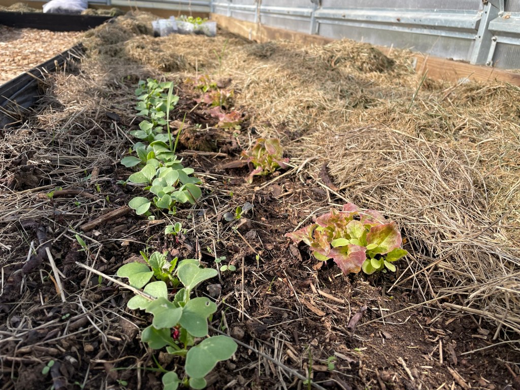 I all denna kalabalik så har jag inte hunnit göra minsta åtgärd för att försöka hjälpa växterna i växthuset på traven – det var ändå -5 grader i morse när jag var uppe och hämtade alvedon till ett barn. Otroligt nog så har faktisk ändå allt klarat sig, det är mest kål där ännu men lite sallad med som jag inte trodde skulle fixa det, men det har den gjort.