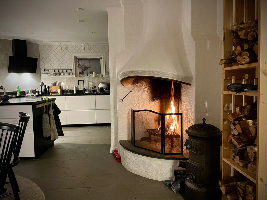 Jag tror inte jag behöver påpeka hur mysigt det är att kunna elda i köket i en öppen spis? Ja, vi har kaminer med, det är mer effektivt, men det är ju värme ända in i själen att sitta vid en eldstad.