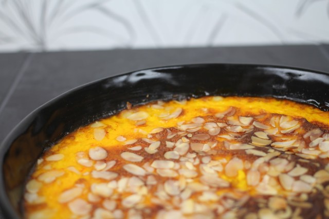 Det är väldigt smidigt att passa på att rosta mandlarna nu, när ugnen ändå är varm. Bred ut en påse mandlar på plåten du hade bullarna på, och rosta mitt i ugnen på 180 grader, i ca 10-12 minuter. Låt svalna helt!