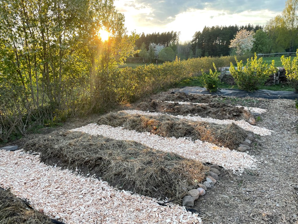 Det är ett ganska stort jobb att få ordning på allt inför säsongen, även fast många land redan ligger klara sedan i höstas med ett tjock lager täckodlingsmaterial på sig, så jag är glad att vi dels hade många dagar på oss och att jag hade god hjälp. Hoppas din påsk var bra med!