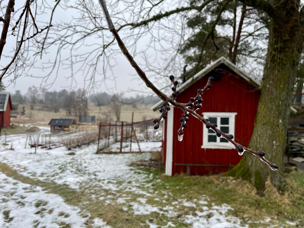 Tänkte jag skulle gå på gruset för att inte halka, men eftersom även det var glaserat av ett lager is var även det snorhalt. Trots detta så var faktiskt inte buss 121 som går mellan Jönköping och Gränna, över Ölmstad, inställt! Imponerad av denna linje, som inte varit inställd en enda gång sedan vi flyttade hit för över tre år sedan – och alltså kom barnen iväg till sina respektive skolor, även om det blev lite förseningar. Själv höll jag på att halka typ 83 gånger när jag var ute med mat till grisarna bara, så jag håller mig nog inne några timmar tills det smält bort – och ja, idag jobbar jag hemifrån med (har frukostrast nu om nån undrar).