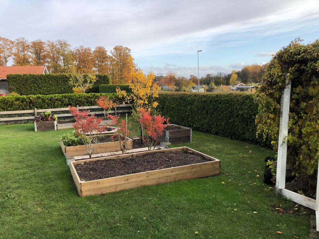 Den fina blomsterrabatten som syns till vänster är HELT övertagen av kvickrot, så jag måste liksom gräva ur den. Men ska försöka ta fröer och spara alla gamla växter som bara går – för att kunna återplantera sen när rabatten är fri från ogräs.