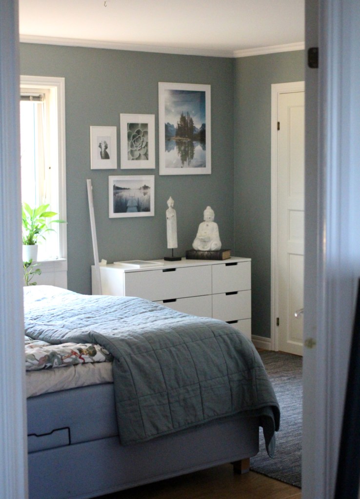 En grynig bild på sovrummet, men det har varit prio att få ordning här och kök, så att man har något lugnt ställe att vila på där inte övrigt stök stör.