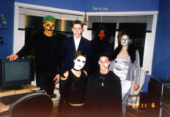 Darth Maul i bakgrunden hade jag målat, gissa vem det var? 😉 (Det är jag med det vita ansiktet längst fram, från ”the Crow”)