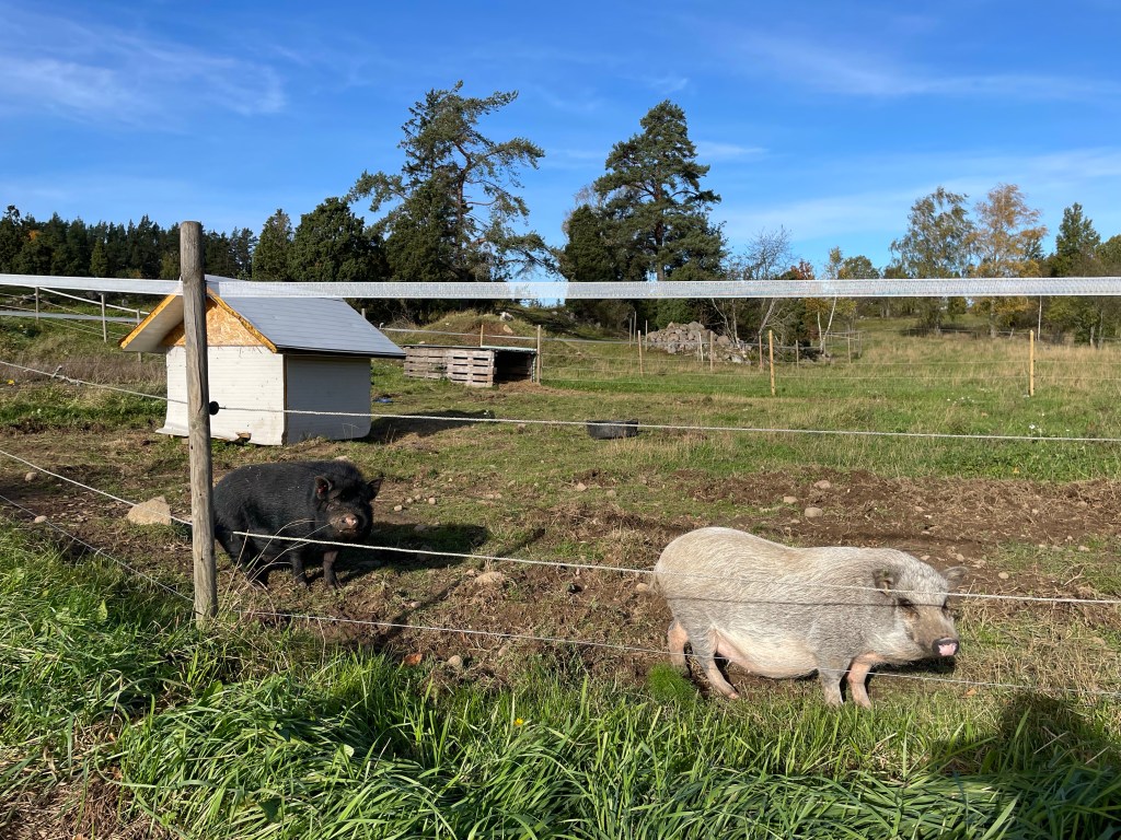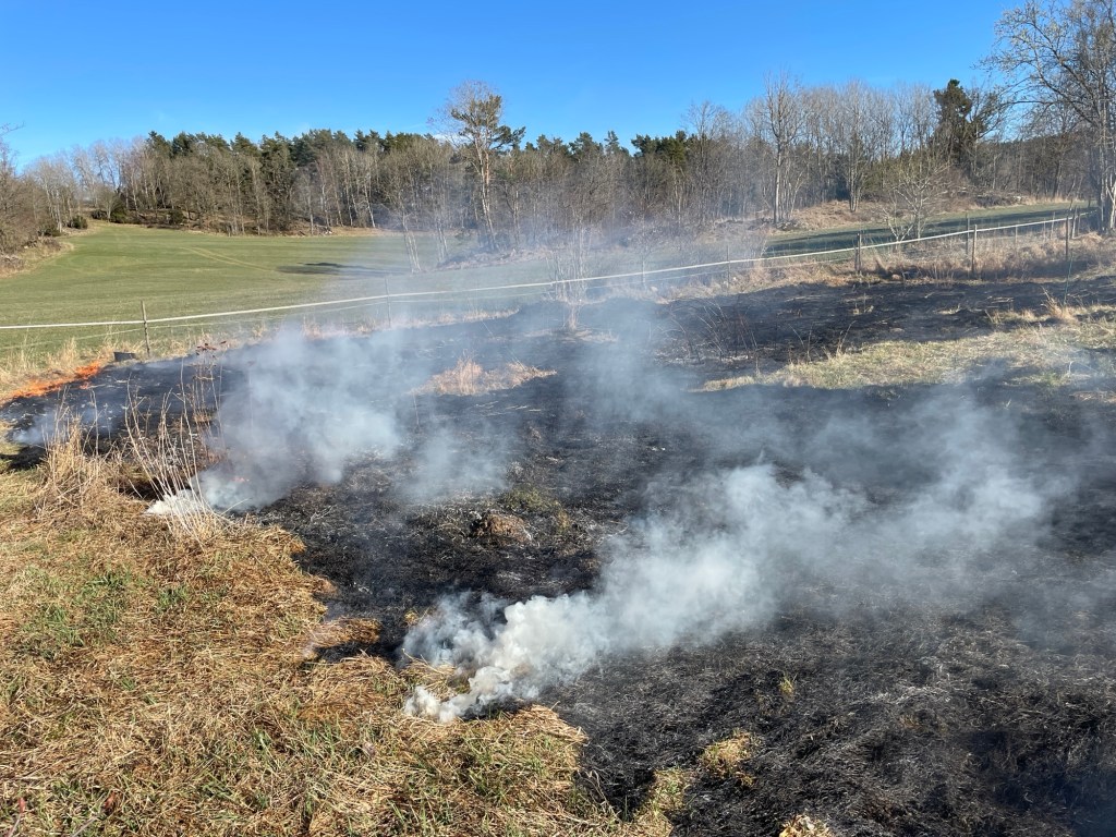 Efter kultingarna åkt till sina nya hem, och vi justerat eltråden i den nya hagen vi satte in smågrisarna, Doris och Knyttet i, så satte vi tänderna i en helt ny aktivitet – gräsbränning. Maken var på kurs med länsstyrelsen i veckan, och vi hade en perfekt plätt med mängder med gammalt torrt gräs (och vass typ, det är lite blött där) som skulle må bra av att brännas, så det gjorde vi. Det var nog inget vi hade vågat oss på utan kursen, och självklart anmälde vi till brandkåren att vi skulle bränna gräs med. Gissar att det kanske var typ 800 kvm vi brände eller så, och det tog flera timmar – men man vill ju inte att det går för fort och blir okontrollerat heller! Vi hade varsin vattenslang och styrde elden med, och det gick riktigt bra!