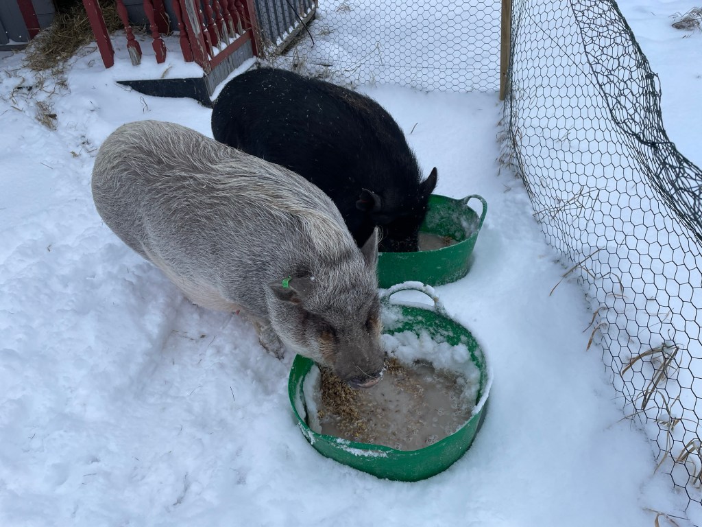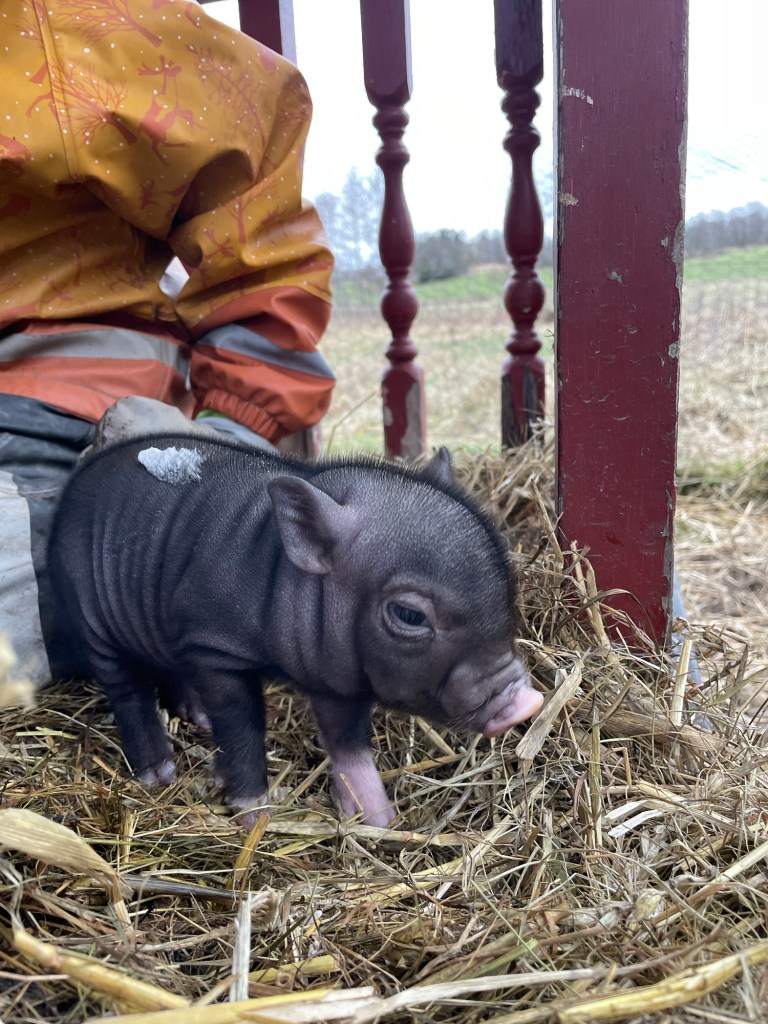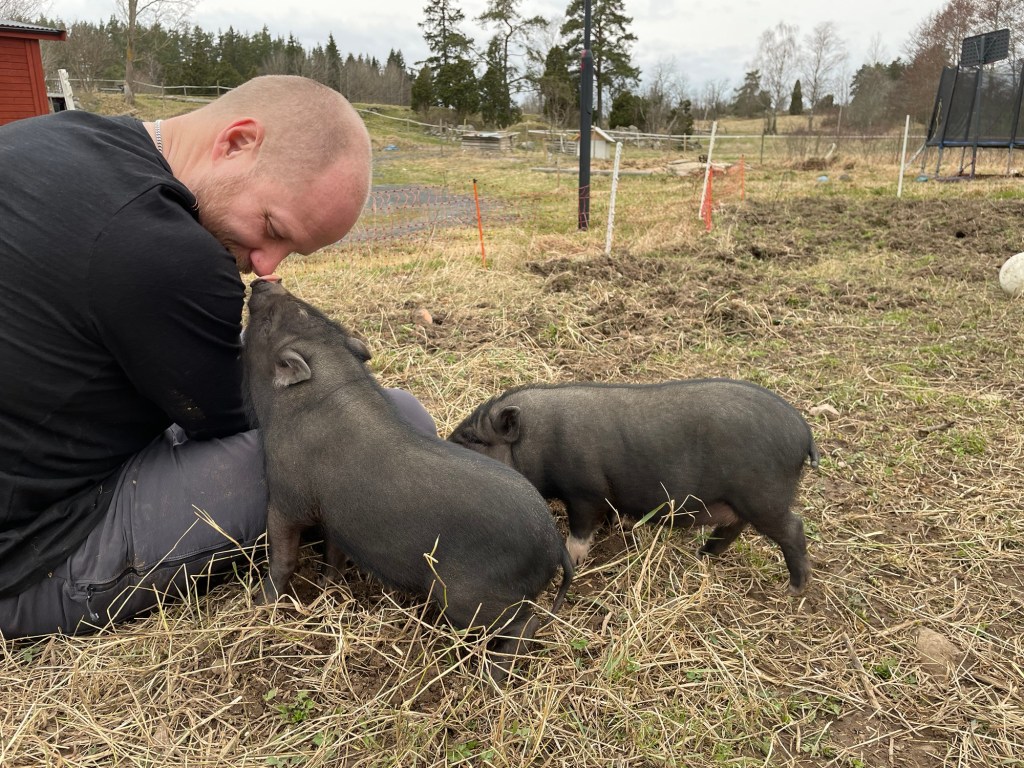 Det blev en lite annorlunda, men väldigt rolig helg hemma på gården. Lördagen försvann mest i träning och sen 3 h i bil för att hämta äldsta sonen som varit på lägergård och lagat mat med sina scouter åt nån årsstämma. Det gjorde inte så himla mycket, det var ju ändå svinkallt ute! På kvällen fångade vi in alla griskultingar och öronmärkte dem – ingen favoritsysselsättning, för de blir så stressade när man lyfter upp dem, även om själva öronmärkningen inte verkar kännas alls. På söndagen skickades två av fyra kultingar iväg till nya hem, så nu har jag bara två kvar som ska säljas framöver förhoppningsvis. Mamma Doris och dottern Knyttet behåller vi 🙂