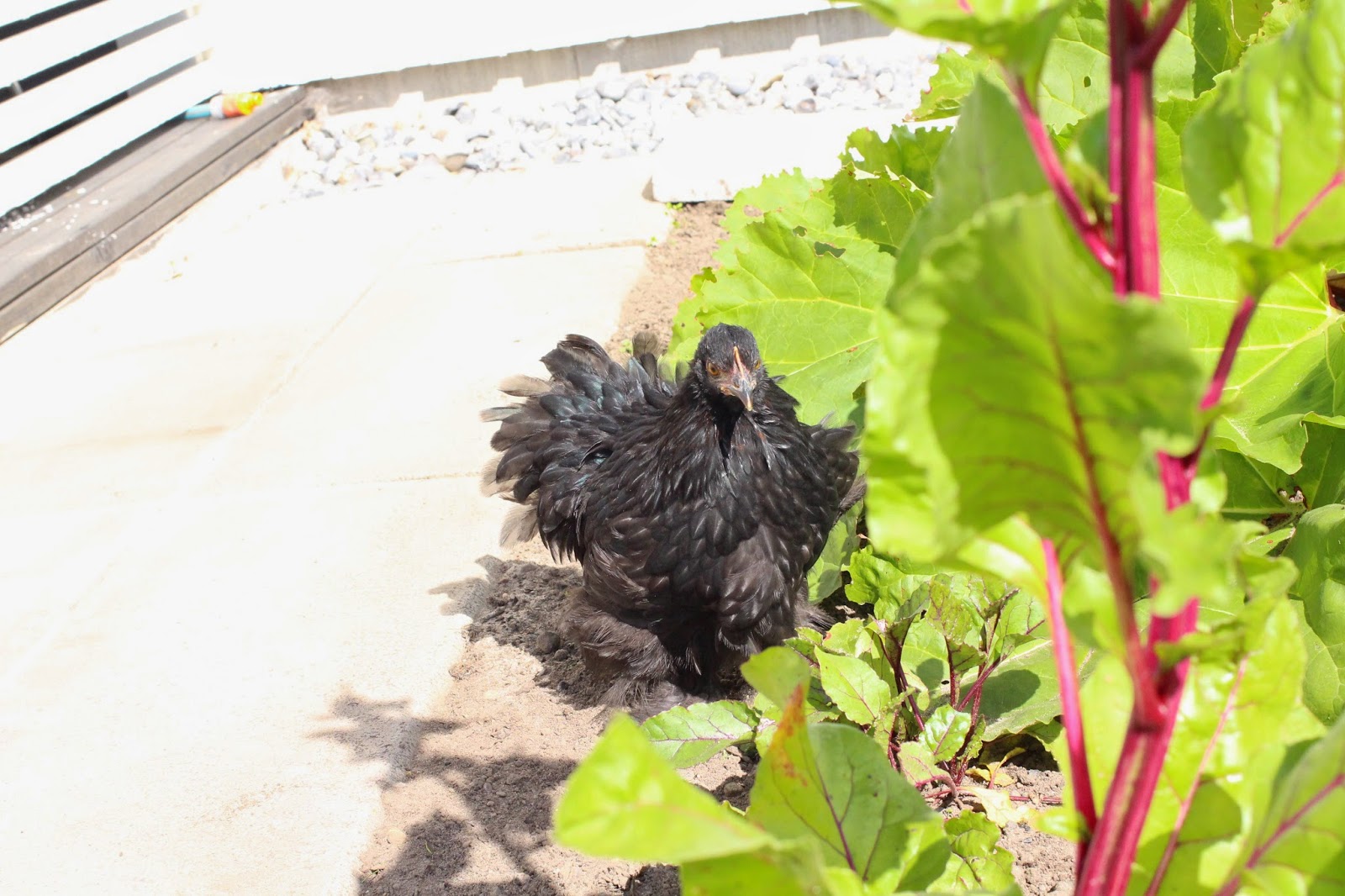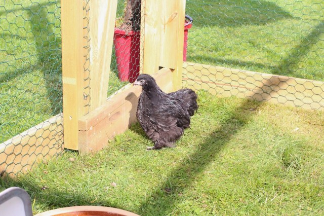 Klart hönorna ska vara med ute när vi är ute och grejar, dessvärre tar de sig lite väl stora friheter ibland så man får jaga in dem från gatan eller grannarna, så nu försöker vi vara ute samtidigt som de är det.