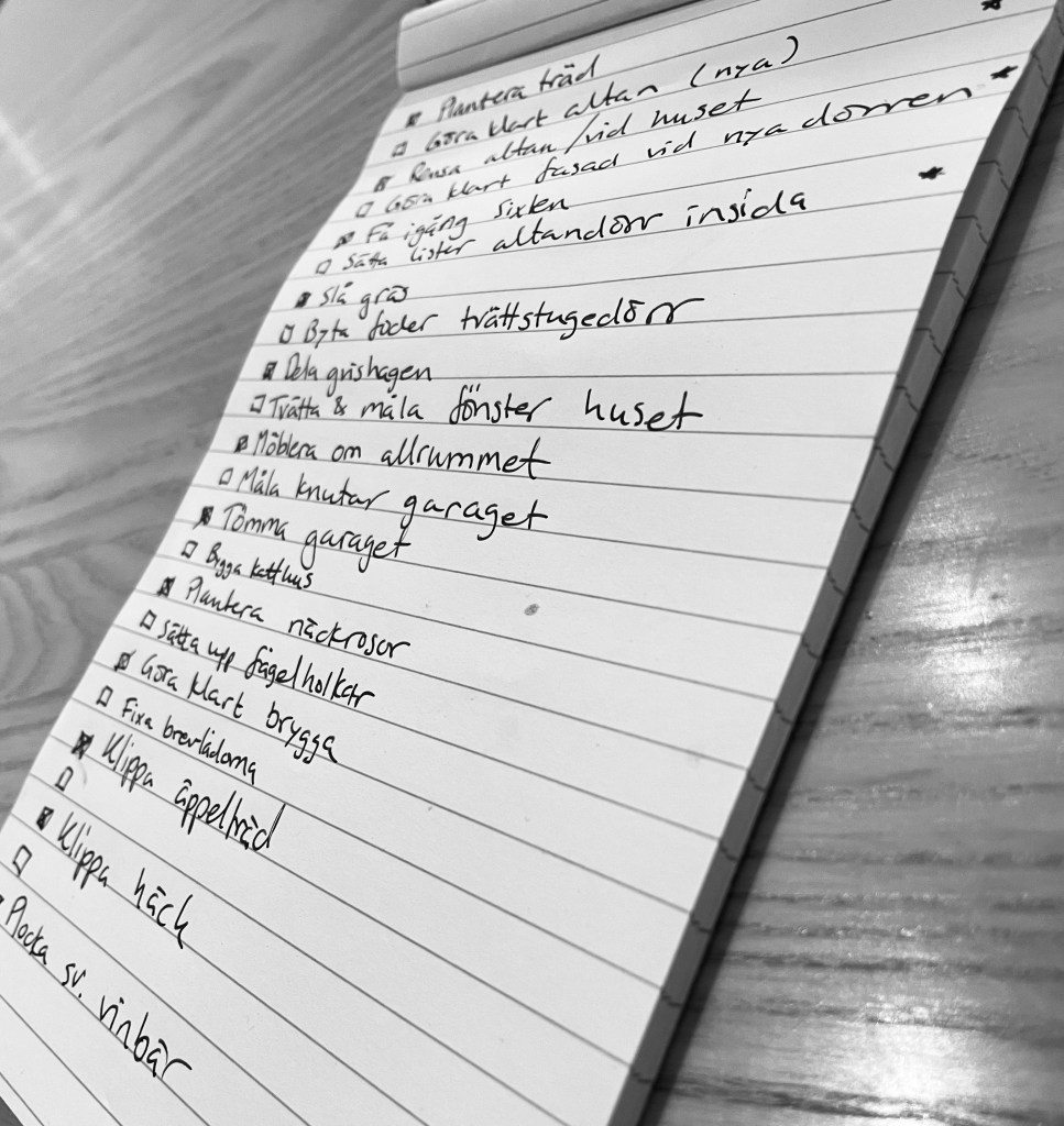 I dag har jag jobbat hemma, och när jag åt lunch passade jag på att göra det ingen annan får göra – nämligen att äta middag framför TV’n i vardagsrummet. Gäller att lyxa till det när ingen ser, haha! I vilket fall, jag satt och tittade på ”Hjälp, vi har köpt ett franskt ruckel” när jag helt plötsligt fick en vision – fasen vad fint det skulle vara att göra en platsbyggd bokhylla runt TV’n, utmed hela den väggen. Var tvungen att plocka fram måttbandet och göra en snabb skiss, för att se om det vore görbart.