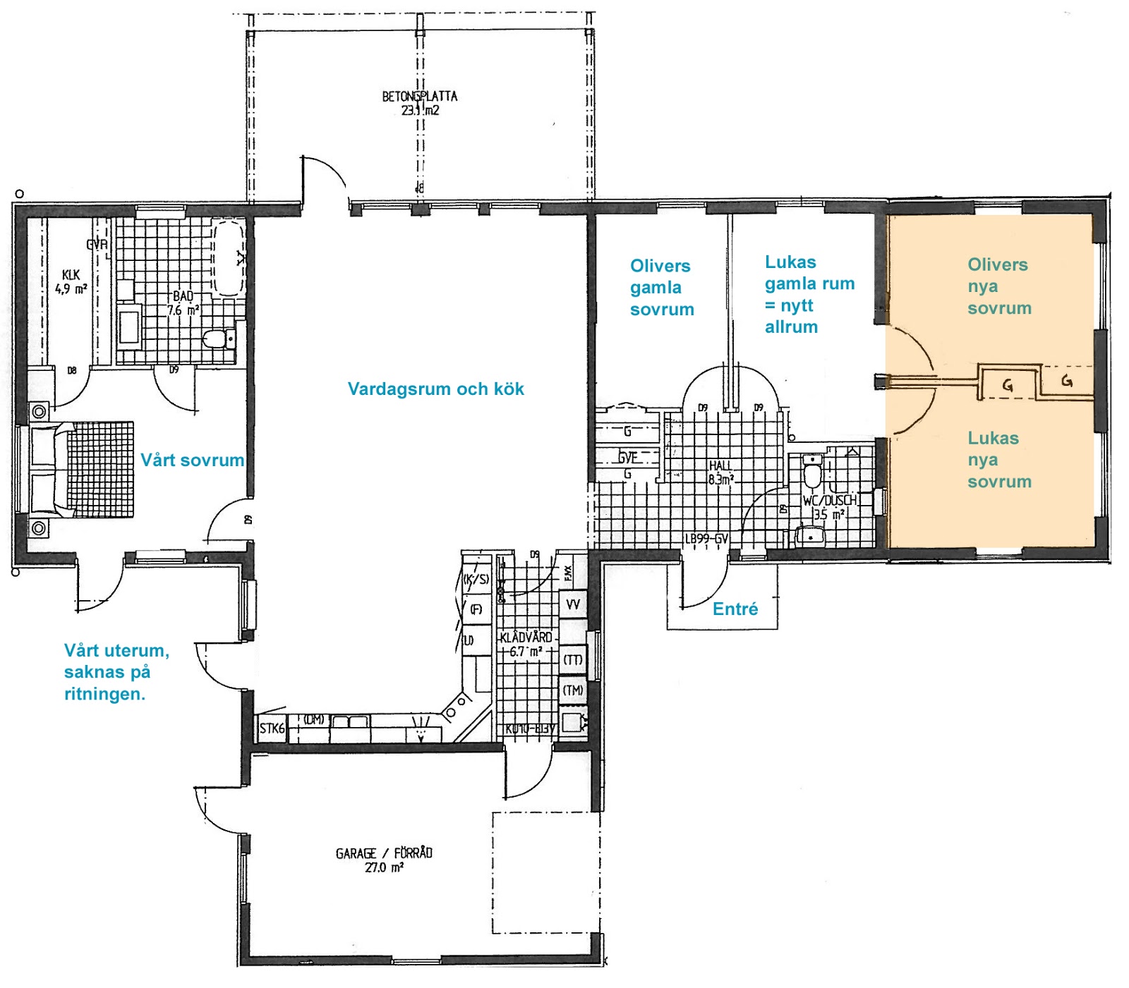Lite lagom jobbigt att måla när armarna är som gelé, dessutom får jag springa upp och ner för stegen ett gäng extra gånger pga att Lukas kastar sand på Oliver, Oliver tar Lukas grejor, Lukas cyklar iväg, Oliver skjuter bort sina bandybollar och 5000 andra skäl. Är MILT sagt irriterad nu.