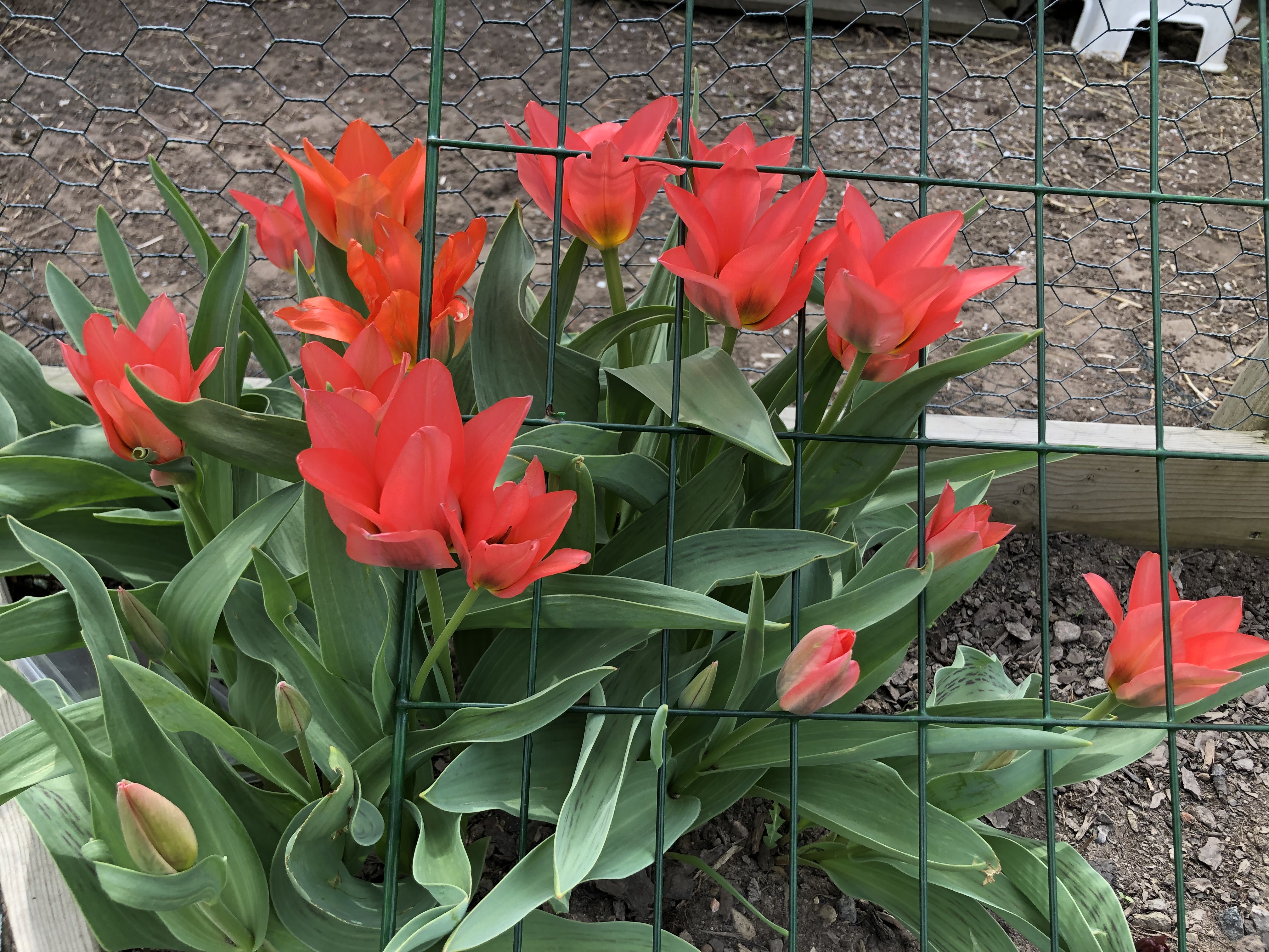 Min mangold har till största delen ätits upp av hönor, och fått en hel del löss i kanterna som gör att de krullar sig. Dillen växte kanon, och bakom den har jag på friland och ganska sent satt både slang- och druvgurka. Speciellt druvgurkan har verkligen tagit sig och blommar, med små, små gurkor som resultat. Hoppas det hinner bli något av dem! Morötterna blev bra med, den röda sorten jag odlade grenar dock ut sig en del vilket gör att de är sjukt svåra att dra upp i blasten, man får typ gräva ur dem. Längst till höger finns vitlök – det kommer jag alltid sätta för det är så gott!