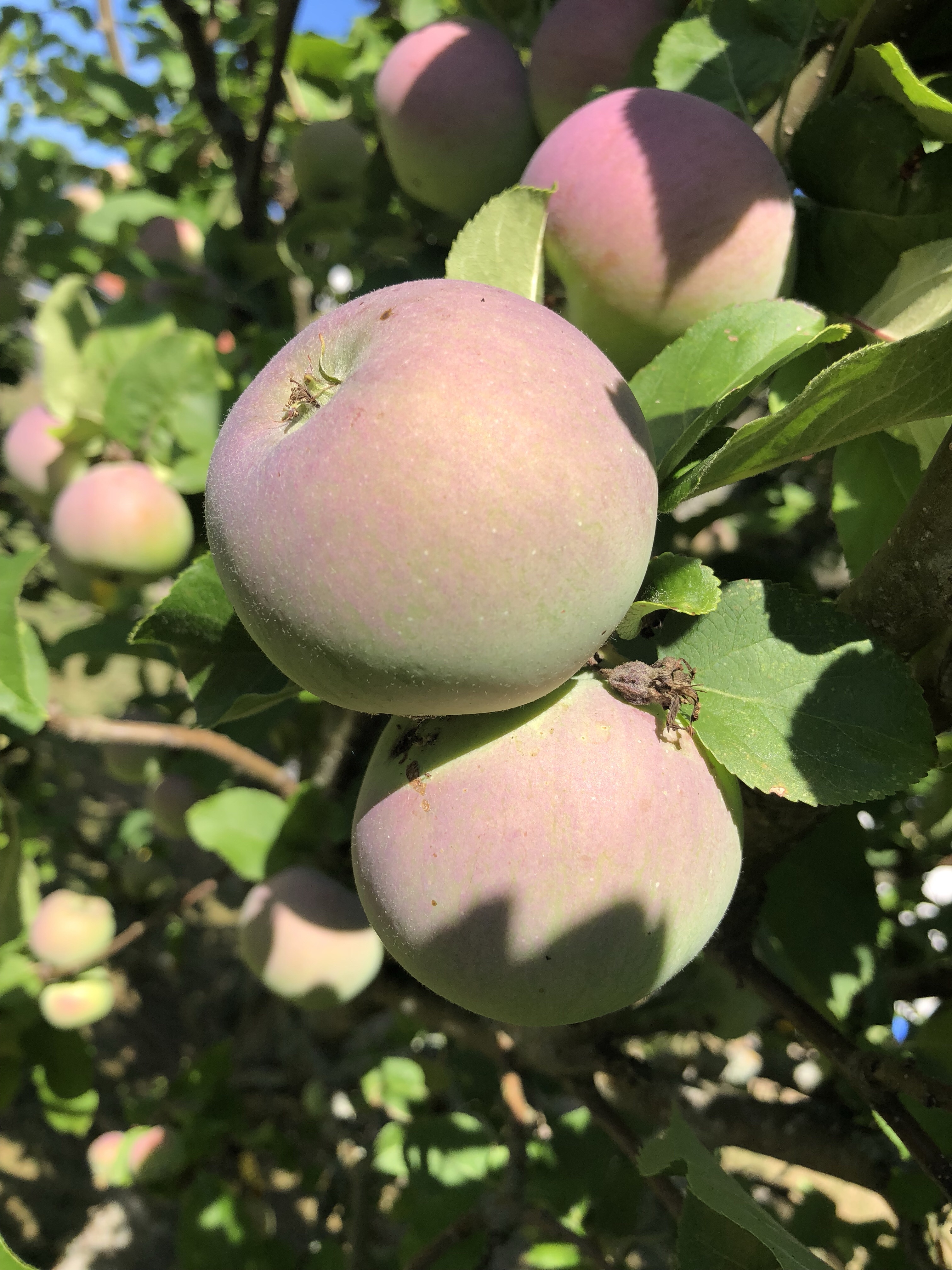 Det första man möts av när man går till baksidan är våra fina äppelträd, tror det är Princess och antingen Silvia eller Victoria, något kungligt var det i alla fall.