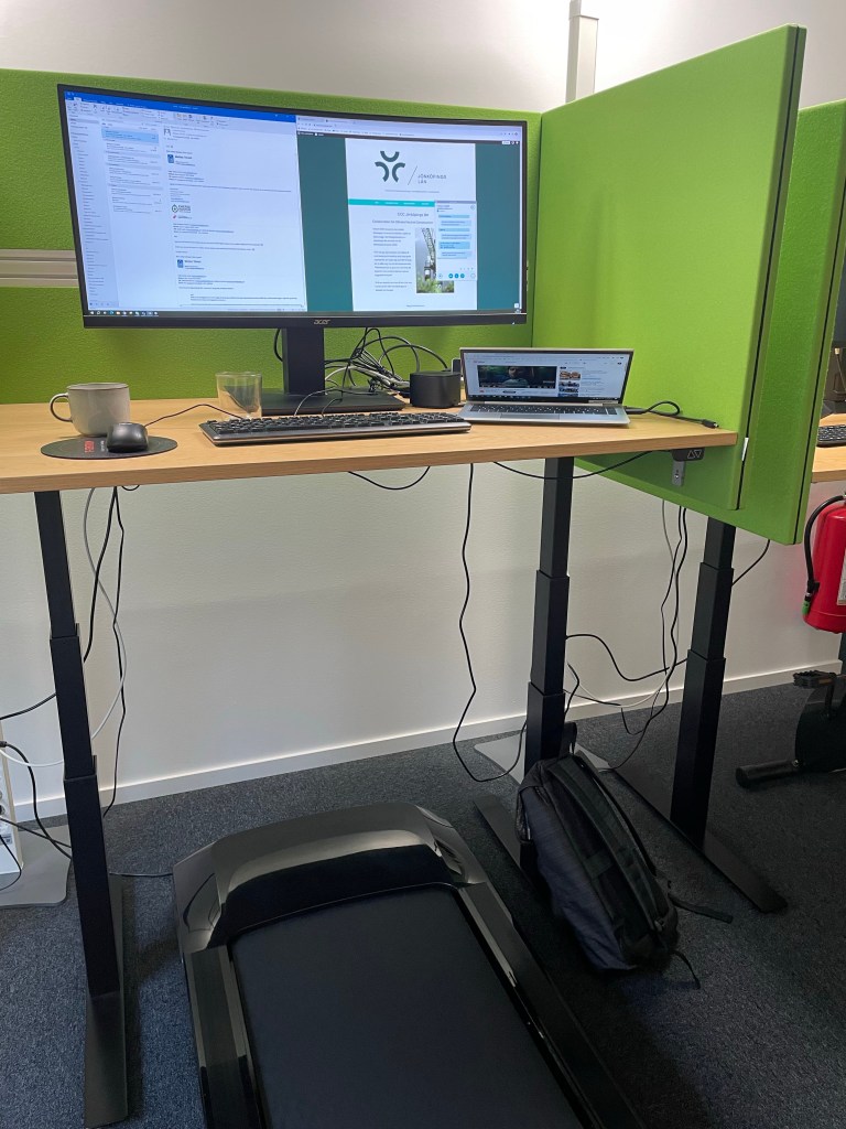 Testadestå vid ett gåband och jobba idag, för att slippa få ont i höften. Funkade lite, men oxå lite svårt att jobba vid.