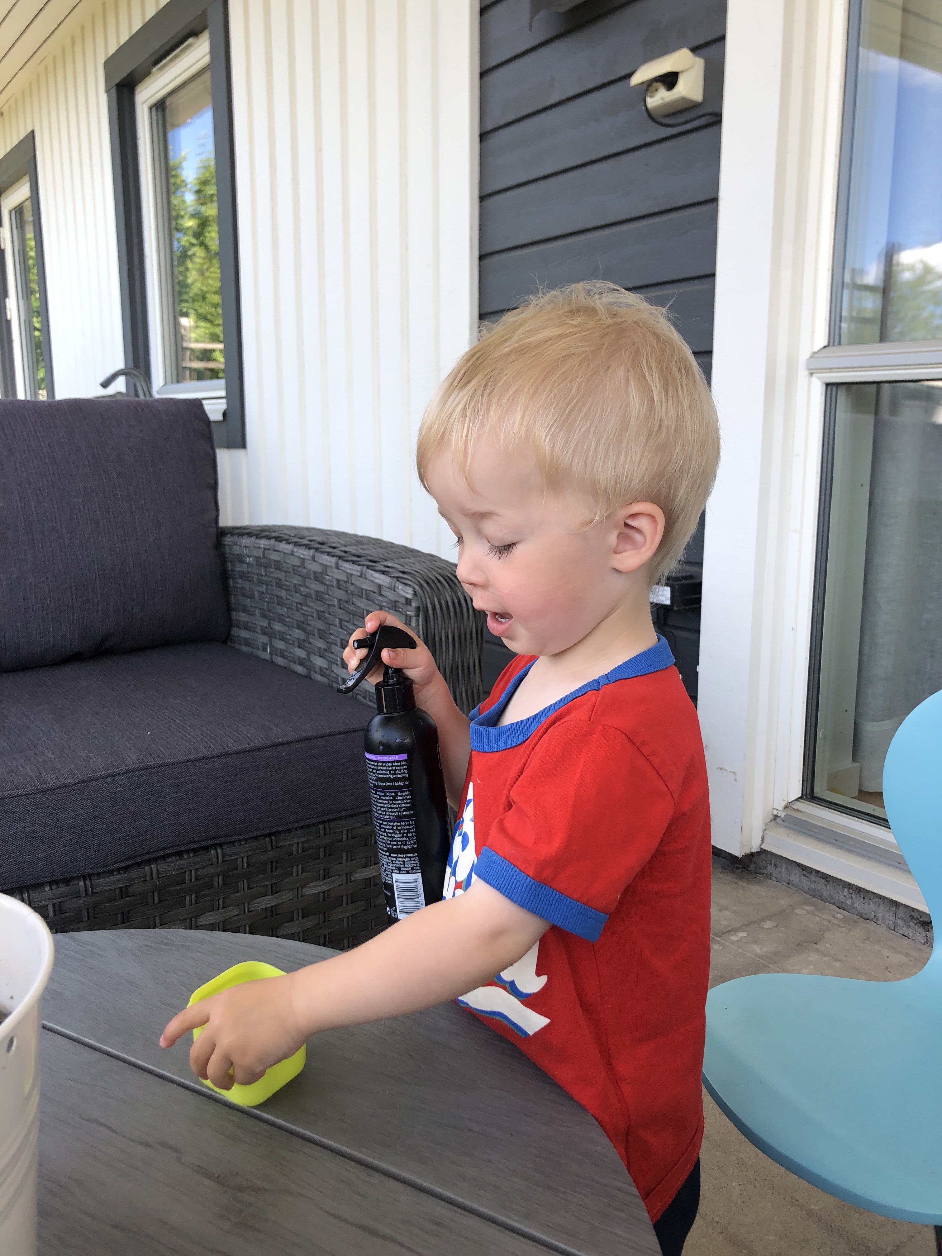 Måste avsluta med ett par bilder på Filip som visar hur glad man blir när man lyckas sätta på vattnet själv 😂😂😂