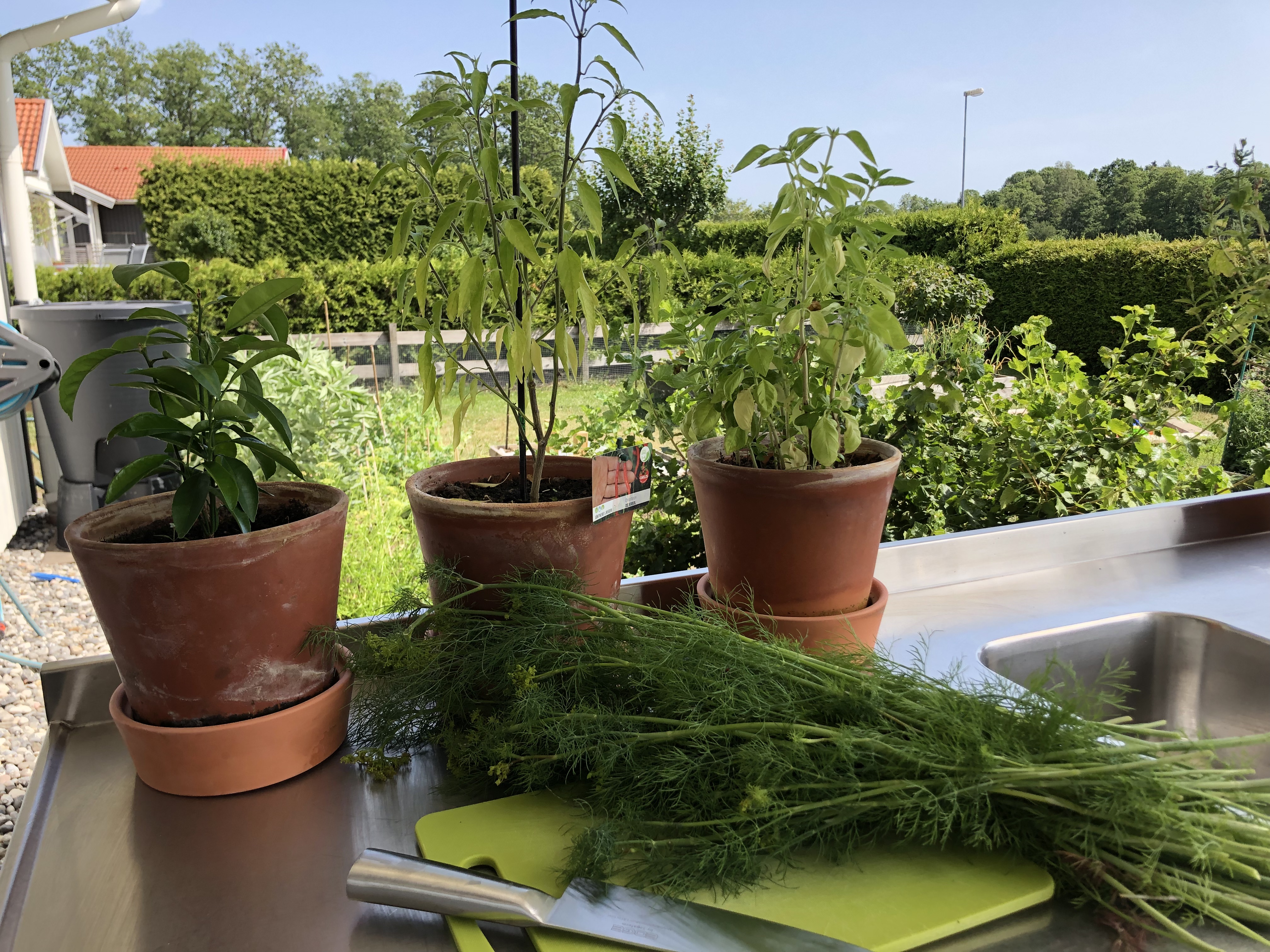 Filip och jag började med en sväng på Nyströms och plantagen i hopp om att hitta fläder-buskar, men det gick så där. Åkte till blomsterlandet sen och hittade två sorter, en klassisk och en röd sort (hette ). Sen har vi fyllt och planterat i några fler pallkragar och lite annat, här kommer en liten guide genom vår trädgård! Vill man se mer finns en film i min profil på Instagram (lindagladh).