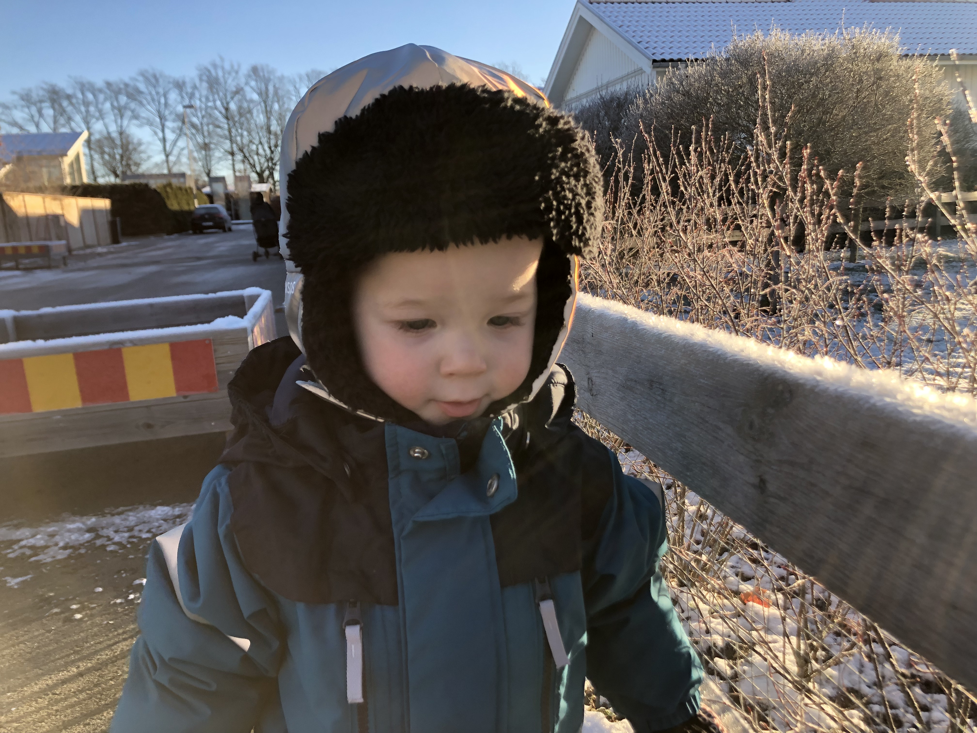 I dag är Filip annars rätt pigg, så vi har varit ute i den fantastiska vintersolen en stund. Vackert men kallt!