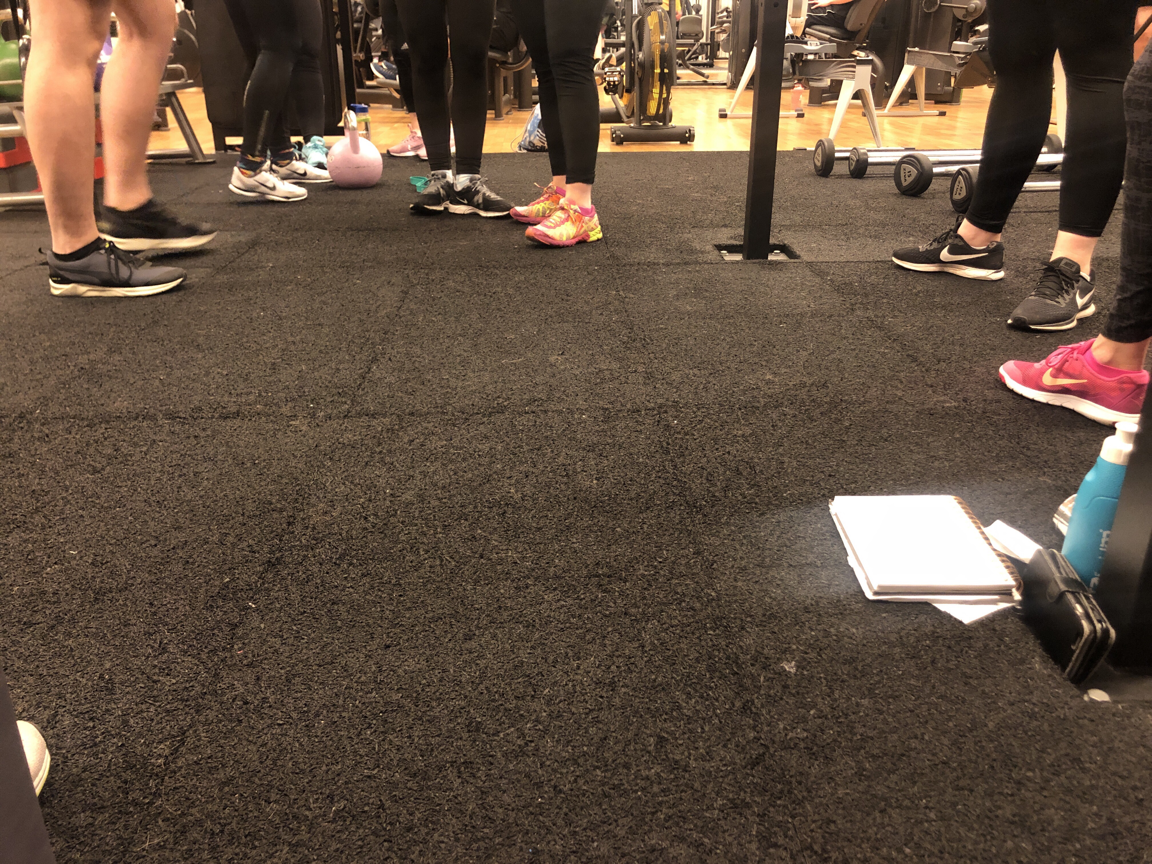 Sitter just nu i ett hörn av gymmet, lutad mot ett element för lite värme, och väntar på att mitt pass ska börja.