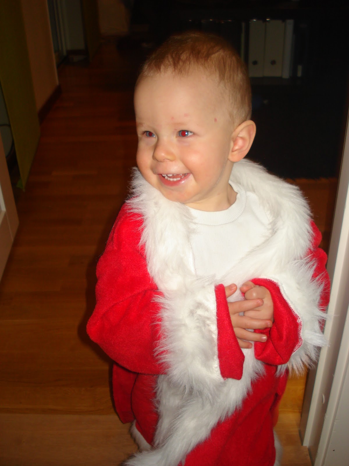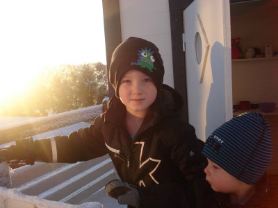 Oliver har (igen) blivit hostig och snuvig, och Lukas verkar ha halsont med, så det är väl inte så konstigt heller. Däremot var han ganska pigg (Oliver alltså), så det blir dagis idag ändå – det är ju inte så långa dagar direkt – och Luciafirande utanför dagis ikväll =) Han ska tydligen vara tomte och springa före Luciatåget på något sätt (det har varit varierande bud på vad han ska GÖRA – allt från att han ska vara starwarstomte till att han ska ha klädrace (utomhus?!?!) så det ska bli riktigt intressant!